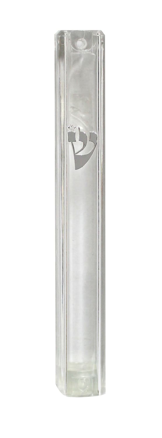 Clear Plastic Mezuzah Water Proof Silver Shin - 20 Cm