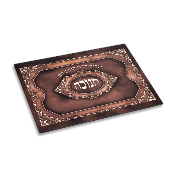 Chanukah Menorah Tray Glass Gold Large 12 X 15.75 "