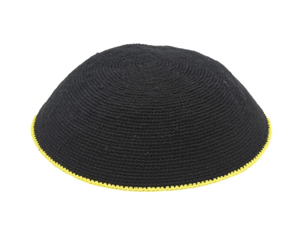 DMC Black Knit Kippah With Yellow Rim 14 cm