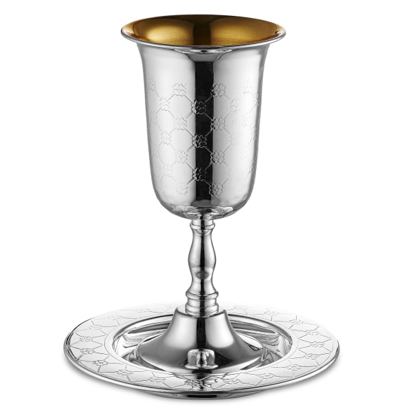 Kos Shel Eliyahu Large Diamond Design 925 Sc Cup 9" Plate 7"
