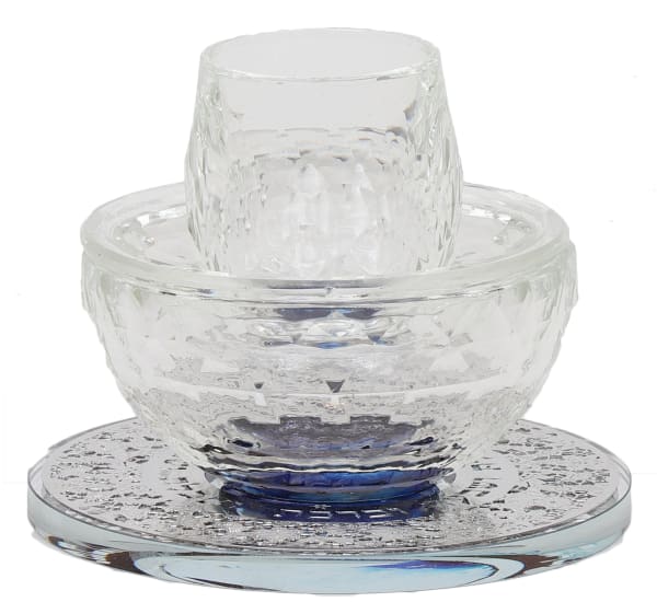 Mayim Achronim Crystal With Silver Flower Design 4"Hx4.5"