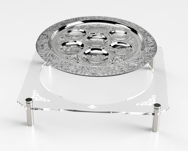 Acrylic Seder Plate Stand Silver Standoffs With Silver plated Filigree Seder Plate 16X16" X3"