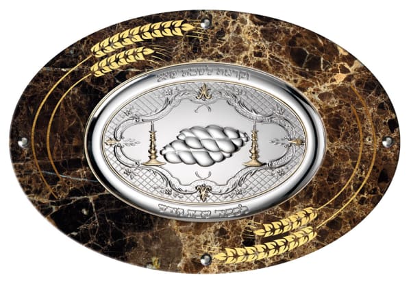 Camilletti Oval Challah Tray With 925 sp Silver & Gold 15.75X10.65" VENGÈ Gold Barley Design