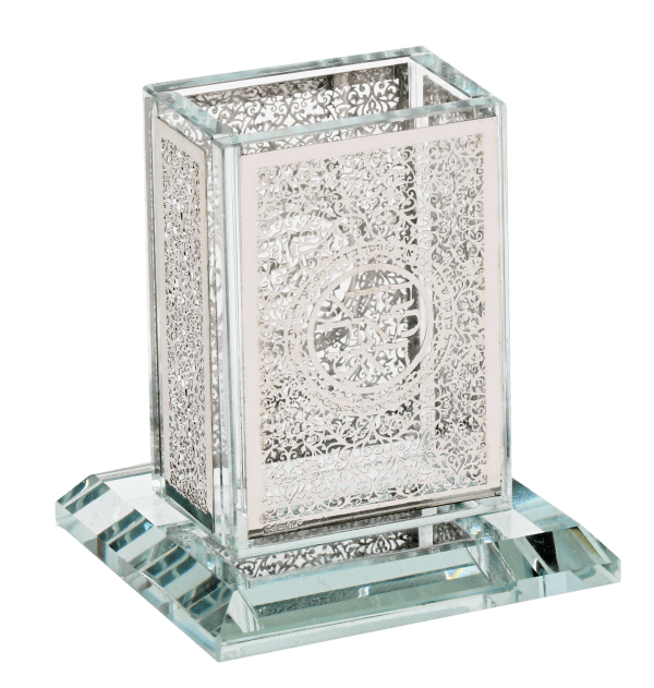 Crystal Havdalah Holder With Silver Plate 3x3.5"