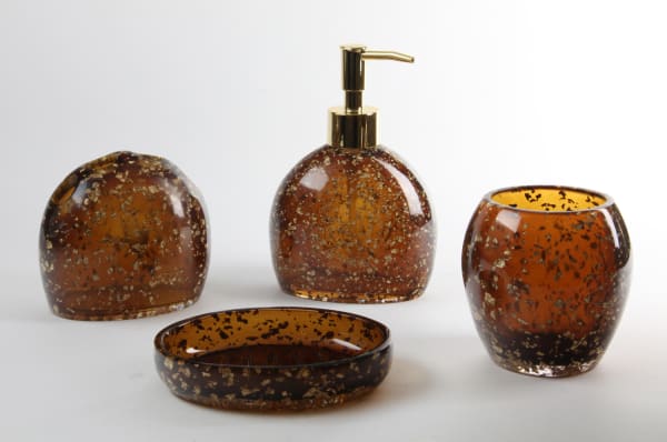 Bathroom Accessories Set Coffee tumbler 3.5" lotion dispenser 6.5" bar soap dish 3.5" toothbrush holder 3.75"