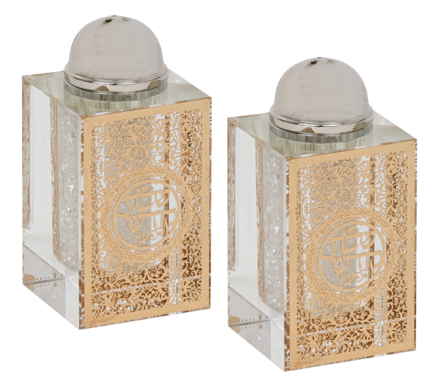 Crystal Salt And Pepper Shaker Set With Gold Plaque