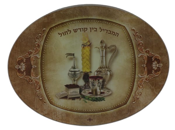 Glass Oval Havdalah Tray Burech Hamavdil 13.5"x9.75"