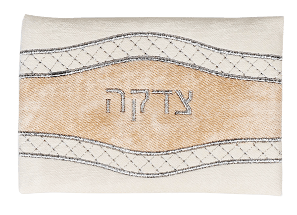 Tzedakah Bag Leather Look Beige & Brown 3.5 x5 "