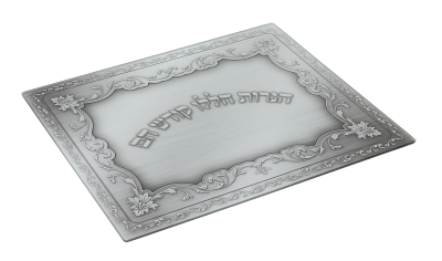 Chanukah Menorah Tray Tempered Glass -Metallic Look Silver “Haneiros Hallalu”13.5 x 9.5"