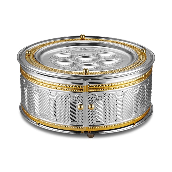 Seder Plate 3 Tier Silver Plated & Gold Royal Palace Design 6"H x 15" W