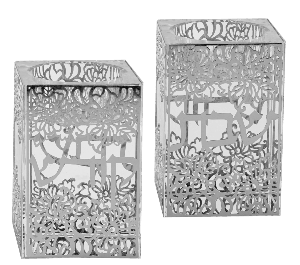 Crystal And Silver Pomegranate Candlesticks 2x3"