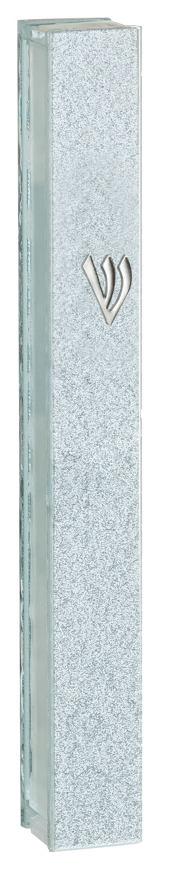 Glitter Glass Mezuzah With Silicon Cork 12 Cm - Slv "Shin"