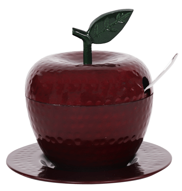 Honey Dish Apple Shape Red Green leaf Aluminum With Tray & Spoon