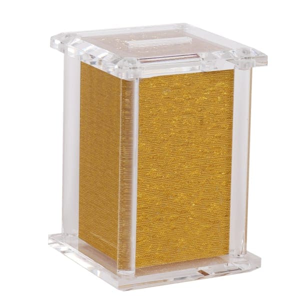 Acrylic Tzedakah Box With Poles Gold 5 x 3"