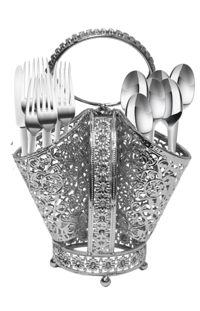 Cutlery Holder 2 Section Silver Plated With Diamonds 10x8"