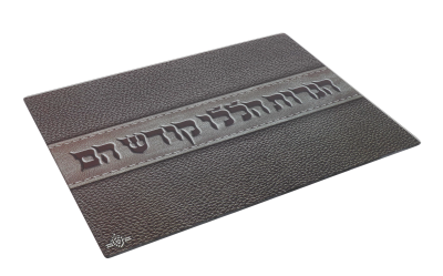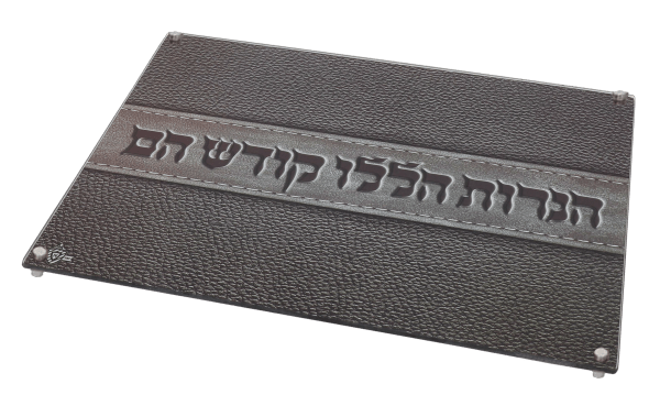 Chanukah Menorah Tray With Legs Tempered Glass -Leather Look “Haneiros Hallalu”12x16"