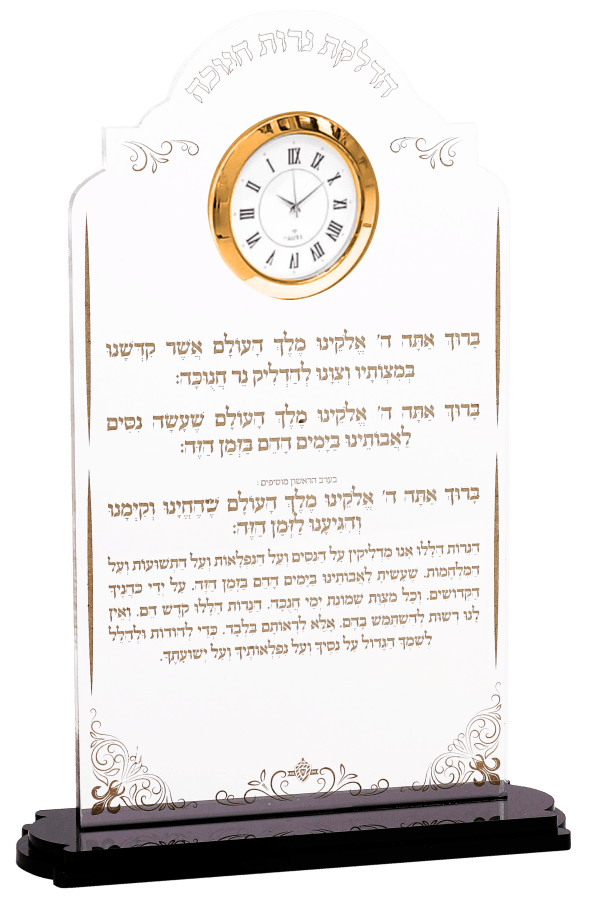 Acrylic Chanukah Brachot Stand With Gold Clock Gold Print 8.5x5.5"