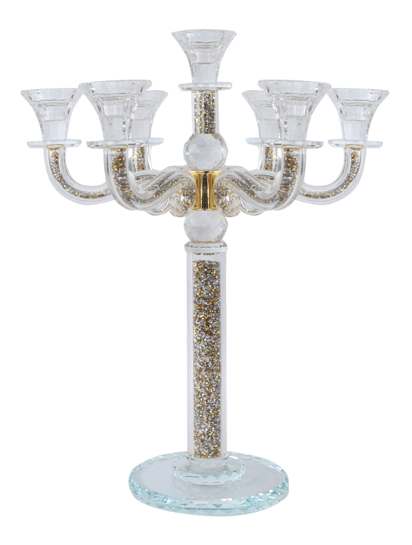 Crystal Candelabra Gold Crystal Filing 7 Branch 16.5"H