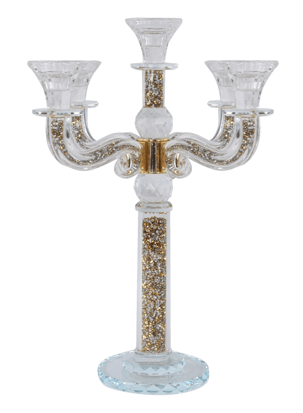 Crystal Candelabra Gold Crystal Filing 5 Branch 15.5"H