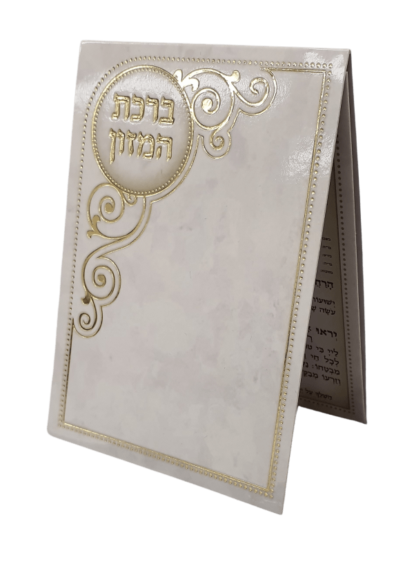 Birchat Hamuzon 3 Fold with Al hamichya Pocket Size white marble 2.34x4"